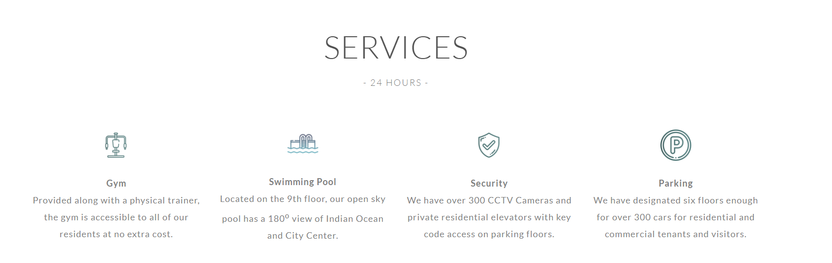 It is a twenty-one floor building, twelve floors dedicated to housing luxurious apartments, three floors dedicated to premium corporate offices, six floors of well secured parking for three hundred visitor’s cars and one floor for recreational area a with stylish gym, swimming pool, sports bar and party hall.